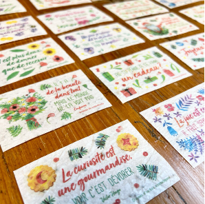 Je me déplace gratuitement lors d’événements spécifiques, à la suite d’une conférence ou d’ateliers, pour vous faire découvrir cette sélection unique. Je vous reçois également à mon domicile sur rendez-vous.